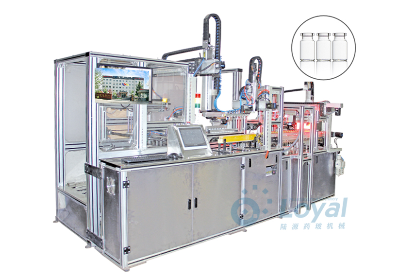 西林瓶生產(chǎn)線包括:自動(dòng)上管、自動(dòng)成型、經(jīng)機(jī)械手轉(zhuǎn)換至前端檢測(cè)線(也叫生產(chǎn)管控)、檢測(cè)線檢測(cè)的項(xiàng)目:1、瓶口內(nèi)外徑 2、瓶身長短 3、瓶身外徑 4、瓶口邊厚 5、瓶底內(nèi)凹尺寸檢測(cè);經(jīng)檢測(cè)后的合格品再用機(jī)械手夾盤轉(zhuǎn)換至退火爐網(wǎng)帶上,經(jīng)高溫減除應(yīng)力后再降溫,通過氣動(dòng)吸盤將回火后的小瓶轉(zhuǎn)換至后端檢測(cè)線,后端檢測(cè)(也是重檢也叫終檢),經(jīng)后端拍照檢測(cè)項(xiàng)目